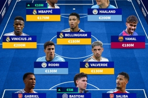 五大联赛身价最高阵:哈兰德、姆巴佩、亚马尔在列,总价超14亿欧